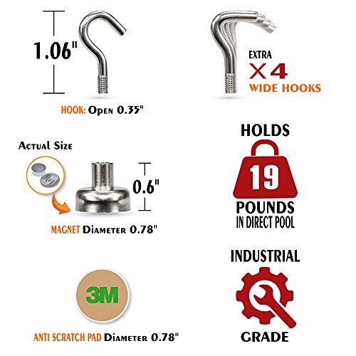 - ✔ INDUSTRIAL GRADE - Heavy Duty Hooks are made from premium quality steel and high grade rare earth Neodymium magnet and they cannot be easily destroyed. You can use these small and strong magnetic hooks in any environment Indoor and Outdoor!