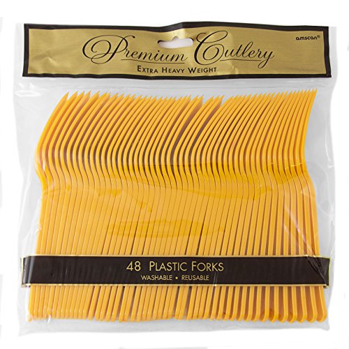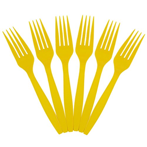 JAM Paper Premium Utensils Party Pack - Plastic Forks - Yellow - 48 Disposable Forks/Pack
