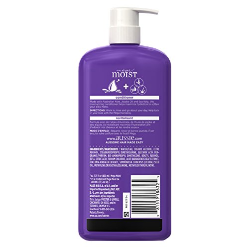 ReleaseDate : 2012-12-01 Studio : Procter Gamble - HABA Hub Publisher : Procter Gamble - HABA Hub Binding : Health and Beauty Product Description Take care of dry, brittle hair with Aussie Mega Moist Conditioner. After you've cleaned your hair with Aussie Mega Moist Shampoo, treat it to a moisturizing conditioner that helps maximize hydration. You'll savor every step of your hair care routine with the blend of floral and fruity scents. Whether you've got dry, damaged or frizzy hair, this conditioner will give your tresses the hydrated nourishment they need. You'll be luxuriating in luscious locks in no time. 0