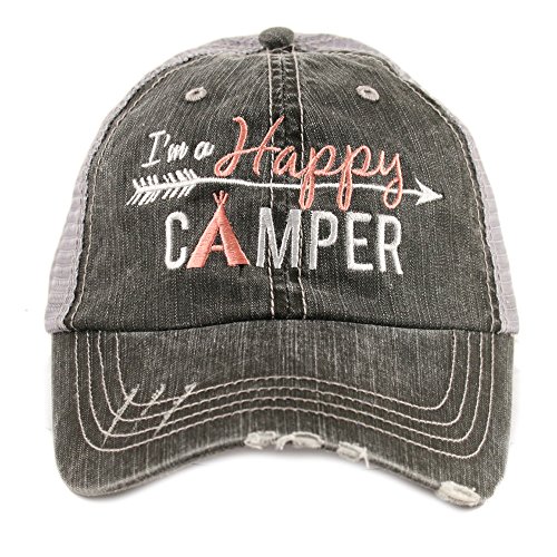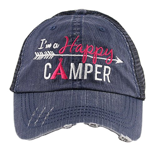 Binding : Apparel Product Description Look stylish with this Katydid I'm a Happy Camper Women's Trucker Hat - Premium Embroidery, Distressed Style, Adjustable Velcro Tab, Curved Bill, Designed and Embroidered in the USA