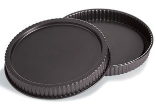 -. Feature : 2 Pampered Chef Torte Tart Flan Quiche Pans 10" in diameter. / These pans are in GREAT condition with no stains, marks or wear. / Pans stack on each other for storage and shipping. / Made of shiny metal / These heavy duty pans have been retired from the Pampered chef website.