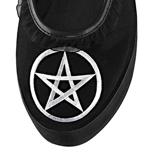 Product Description Check out these womens mary janes. They feature an embroidered pentagram on the vamp and a ruffle lace trim.0