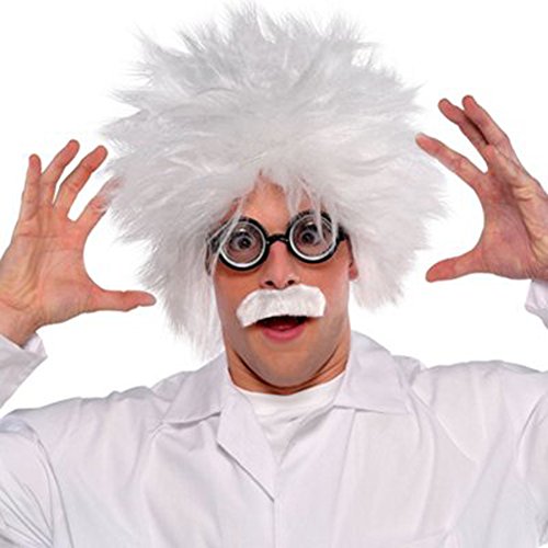 -. Brand : Amscan -. ClothingSize : One Size -. Color : White -. Department : mens -. EAN : 0809801708302 -. Feature : 3 piece set includes disheveled white wig, clear lens glasses and self-adhesive moustache / Transform into the Mad Scientist you've always wanted to be / Perfect for Halloween, dress up, playt time, or cosplay / Rich detail for the ultimate costume that everyone will love / Quality construction to withstand a night of fun and adventures -. Label : Amscan -. Manufacturer : Amscan -. Model : 840803 -. MPN : 840803 -. PackageQuantity : 1 -. PartNumber : 840803 -. ProductGroup : Apparel -. ProductTypeName : ADULT_COSTUME -. Publisher : Amscan -. Size : One Size -. Studio : Amscan -. Title : Amscan Mens Mad Scientist Wig Kit - 3 Piece Kit Halloween Costume Accessory -. UPC : 809801708302
