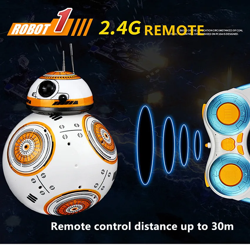 1ピースアップグレードrc bb8ロボットで音と踊っアクションフィギュアギフトおもちゃ2.4グラムリモートコントロールBB-8ロボットインテリジェントbb 8ボール玩具
