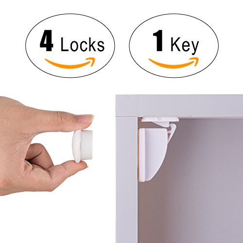 Baby Proof Magnetic Cabinet Safety Locks, CO-Z Hidden Magnetic Latch Lock Systems - No Tools No Drill Needed (4 Locks + 1 Key)