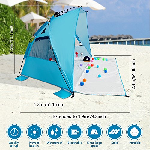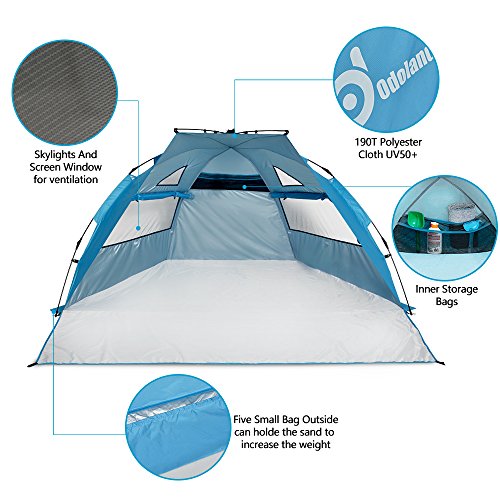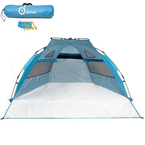 Sun Shelters,Odoland Superfast Automatic Pop Up Instant Portable Outdoors Beach tent,UPF 50+ Sun Protection Polyester Tent For Kids, Family, Beach, Camping, Park,Big Extended Size 94”x78”,Blue