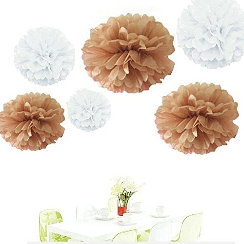Since ® 12pcs 8inch 10 inch 14 inch Tissue Paper Pom-poms White Tan Outdoor Decoration Tissue Paper Pom Poms Party Balls Wedding Christmas Xmas Decoration