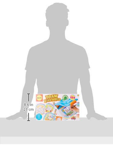 Choose from 124 different slide images. | 124 Drawing Slides for Different Drawing Activities This drawing station includes 124 preprinted slides that allow children to create 3 types of artwork. There are mix and match heads and bodies to create characters, tilt the light forwards and backwards to change the size of the projected image to make wacky proportions. Draw a scene by tracing different elements from the scene slides. Move your paper left and right to combine a volcano, dinos and plants to make a prehistoric scene. There is even a wheel of slides so that you can make your own flip book with precut pages and a flip book clip. Adjustable with Lots of Art Materials Drawing surface slides out for horizontal and vertical drawing positions. Click the top of the Draw Like a Pro up or down to change how big your image appears. Also includes 6 markers and paper. Store all your slides and supplies in the built in drawer inside the machine. Carry the Draw like a Pro by its handle to the car, grandma's house or onto a plane. Compact unit makes it easy to start and stop projects. Easy Video Instructions Just log onto www.alextoys.com to watch easy video instructions to see how to use the slides and make the different kinds of drawings and make your own flip book. Drawing becomes a magical experience as you work with the projected image and manipulate their size easily by moving the light closer to the drawing surface or farther away. What's In The Box? Includes Draw Like A Pro Projector, 12 slides, 6 markers, 10 sheets of paper, and precut flip book pages, flip book clip and easy instructions. Requires 3 AA (LR-6) batteries not included.