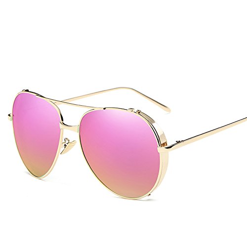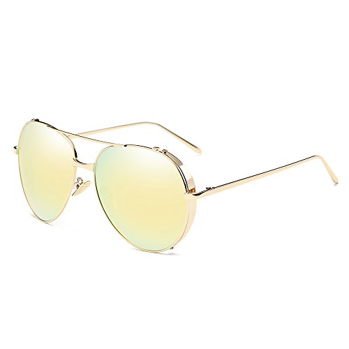 5.Full metal abstract panto shaped aviator sunglasses that feature a unique extended brow bar, colorful mirrored lenses and styled with flat lenses that are designed for less curvature of the frame.