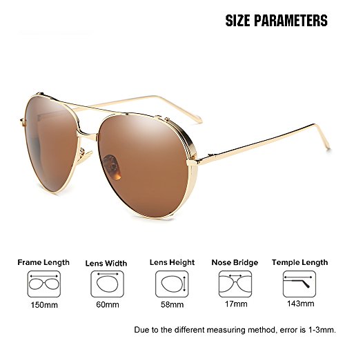 3.Products Dimension---Lens Height:58MM(2.28 Inches);Lens Width:60MM(2.36 Inches);Temple Length:143MM(5.63 Inches);Nose Bridge:17MM(0.67 Inches);Frame Length:150MM(5.91 Inches).