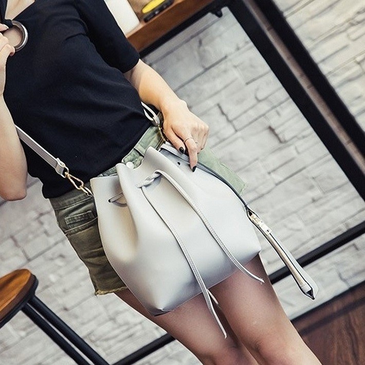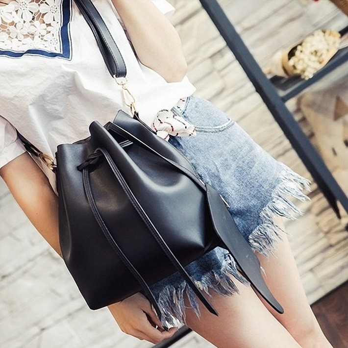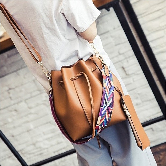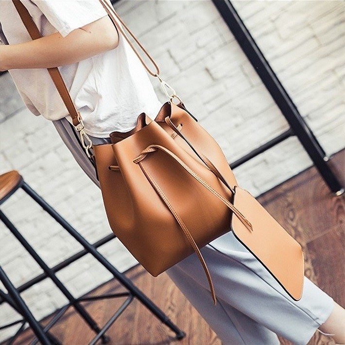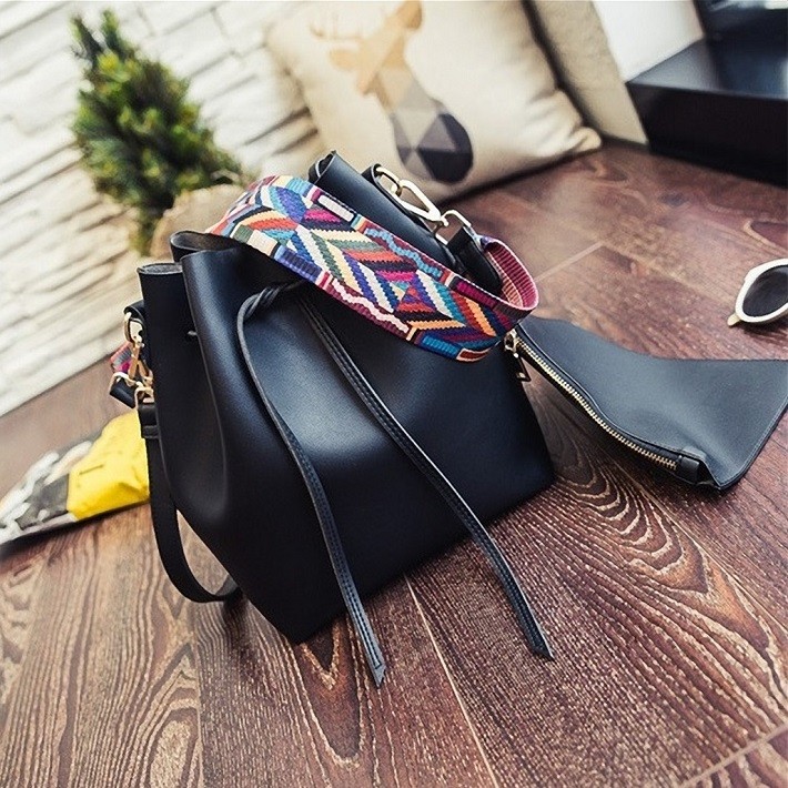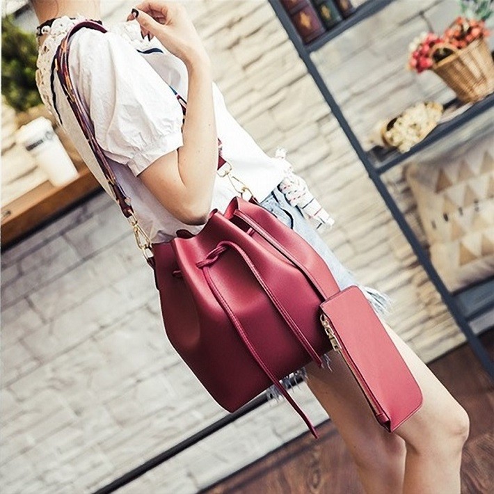 母の日、お誕生日、ホワイトデー、クリスマス、結婚記念日、入学祝い、入社祝い等のプレゼントにもおすすめです。・カラー:ブラック / グレー / ワインレッド / ライトブルー / キャラメル・素材:レザー(合成皮革)【巾着型バッグサイズ】横幅:約35.5cm高さ:約28cmマチ:約11cm重量:約500g・内ポケットなし・ブラックストラップ長さ:約62cm~約114cm(調節可能・取り外し可能)・カラフルストラップ長さ:約63cm(調節不可・取り外し可能)【ポーチサイズ】横幅:約21.5cm高さ:約14.5cmマチ:なし留め具種類:ファスナー重量:約100g・ポーチ取り外し可能※合成皮革特有のにおいがする場合がござます。においが気になる場合は、一度陰干しされてからご使用ください。※ 北海道にお住まいの方:200円  沖縄県、離島にお住まいの方:700円  別途送料を頂戴いたしますのでご了承くださいませ。