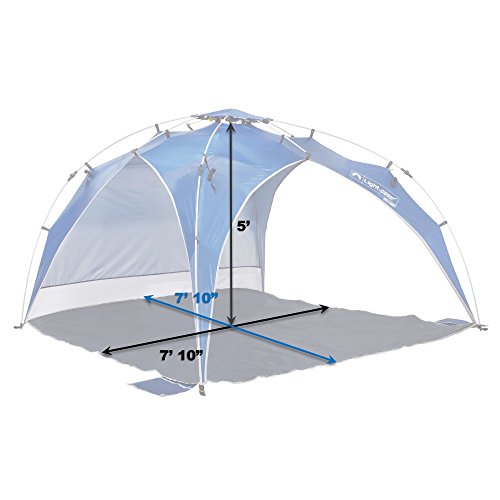 Lightweight at 7 lbs; This shade tent gives 8' x 8' x 5' of generous space a sun protection; Packs down to 50" x 5'