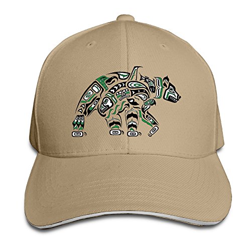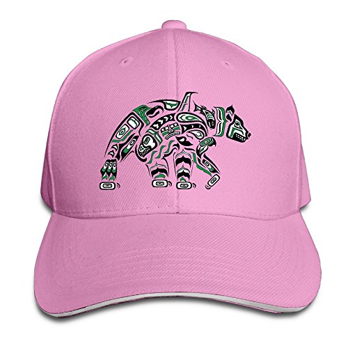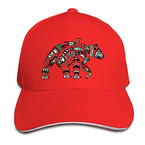 KS-QON BENG Native American Bear Art Unisex Fashion Adjustable Sandwich Baseball Cap/Hat Red