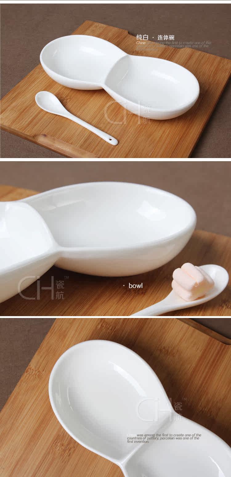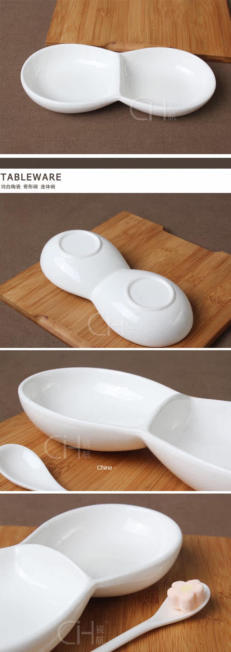 瓷航连体碗陶瓷纯白双格酱料碗点心碗糕点碗甜品碗西式餐具创意