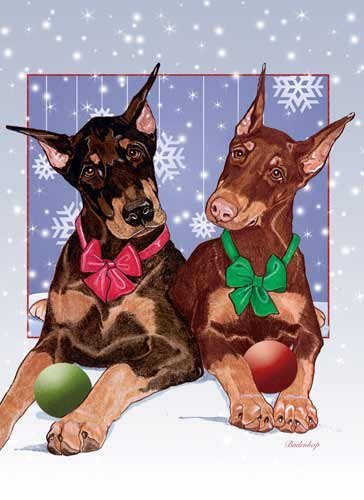 Doberman Pinscher Christmas Cards : 10 Holiday Cards with Red Envelopes - ADORABLE!