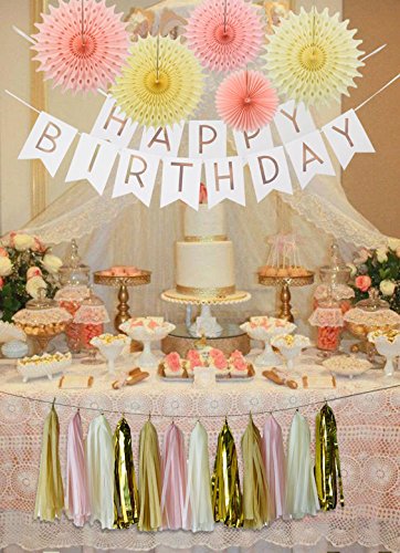 -. Title : Wcaro Party Decor Kit Tissue Paper Fan Tassel and HAPPY BIRTHDAY Banner Party Hanging Decoration Favor for Birthday