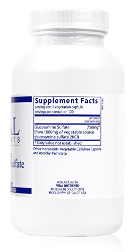 Vital Nutrients - Glucosamine Sulfate 750 mg (Vegetable Source) - Support for Healthy Joint Function - 120 Capsules