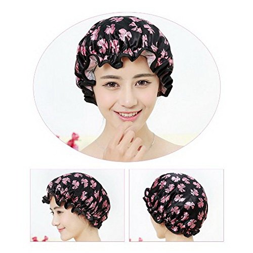 ESA Supplies Waterproof Lined Shower Caps for Long Hair Women Double Layer Bath Cap 2 Packs