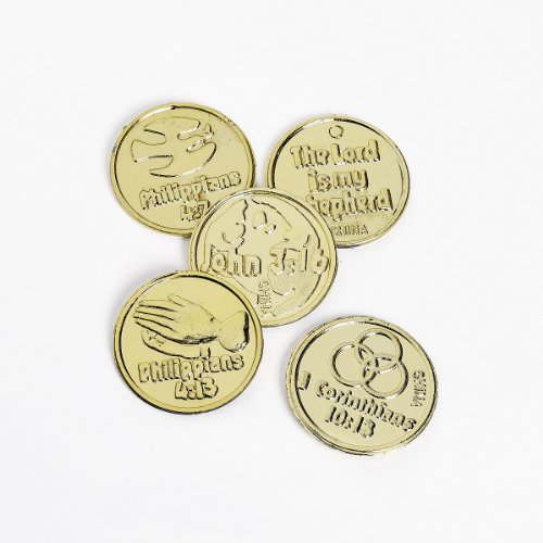 Fun Express Plastic Bible Verse Gold Coins - 144 Piece Pack