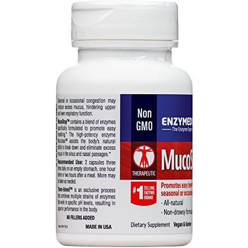 CLEAR RELIEF: MucoStop contains a blend of enzymes specifically formulated to naturally promote easy breathing during seasonal or occasional congestion. Mucolase is a high-potency proteolytic enzyme that targets and hydrolyzes excess mucus. Mucolase also assists the body’s natural ability to break down and eliminate excess mucus in the sinus and nasal passages. Protease and amylase are also included to assist in overcoming the challenges often associated with seasonal or occasional congestion.