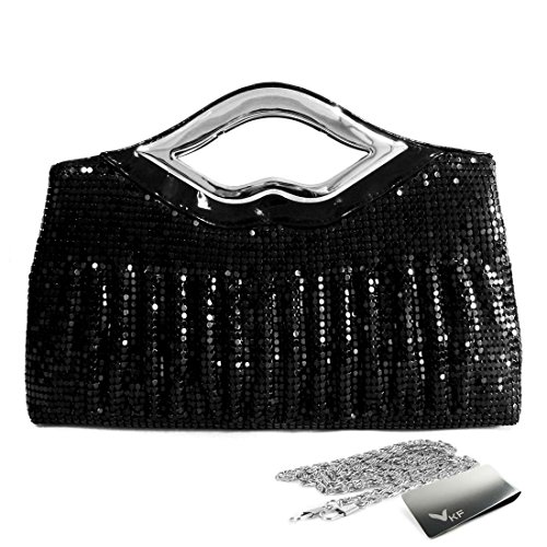 Product Description Missy K Metal Mesh Clutch Purse with metal mesh design, makes you bling bling attractive in the party. This hot and cute clutch purse is suitable for many occasions such as evening party, ball, dinner party, wedding and even business meeting. Comes with a long strap of 47 inches and the grip handle in sexy lips shape, you can easily convert this clutch purse into an elegant, long shoulder purse or a cute, dainty mini handbag.