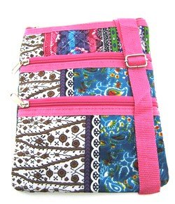 -. Title : Boho Patchwork Print with Hot Pink Trim Small Hipster Cross Body Shoulder Bag Purse Handbag