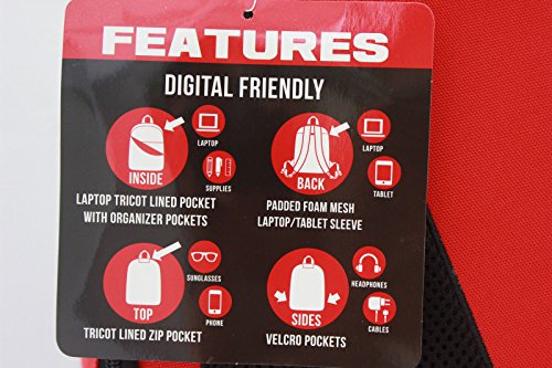 Studio : AST Toys Publisher : AST Toys Binding : Toy Product Description This unique dead pool backpack is very digital friendly with laptop tricot Fabric lined pocket inside and padded foam sleeve on back. Tricot Fabric lined zip pocket has room for sunglasses or your phone. Side pockets with velcro closure have room for headphones, cables, or any other small essentials. Has many organizational slit pockets on the inside as well. Foam padded back and straps provide extra comfort. 0