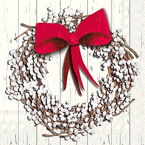 Ideal Home Range L766600 Holiday Paper Luncheon Napkins, White Berry Wreath
