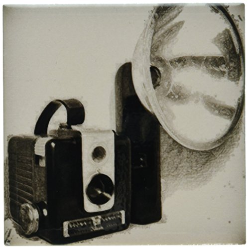 3dRose ct_20728_1 Picture of a Vintage 1950S Camera with Bulb Flash Ceramic Tile, 4-Inch