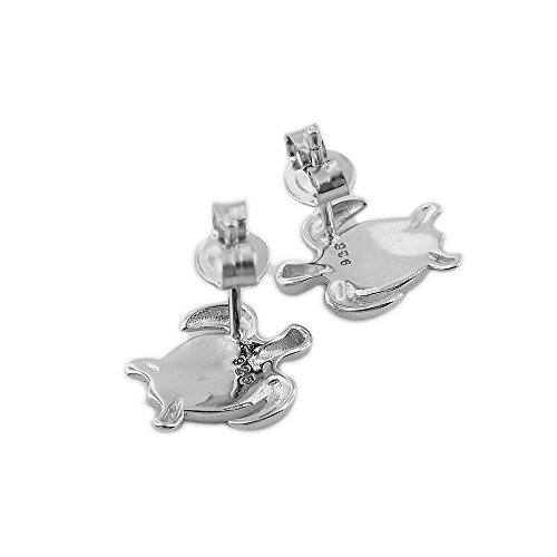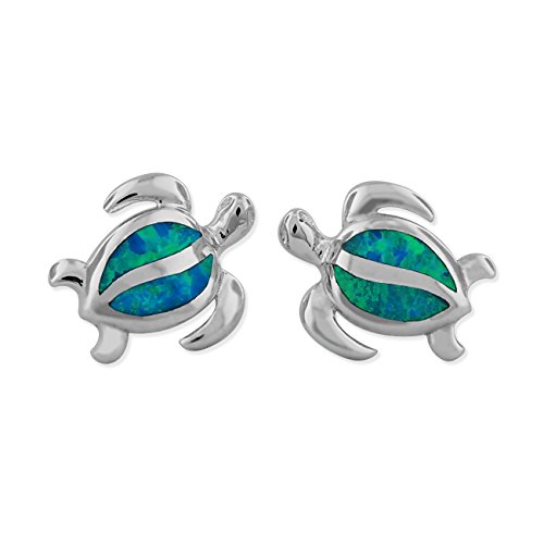 -. Title : Rhodium Plated Sterling Silver Synthetic Blue Opal Turtle Stud Earrings