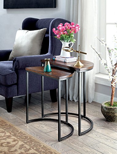 -. Brand : FOA -. Color : Brown -. EAN : 4434999980009 -. Feature : The tables sits well in most homes , and is well suited for living rooms and hallways / It comes with two nesting table set and tables are in good moon shape / Metal Frame with wooden top and medium weathered oak / Product Dimension:Nesting TableSmall: 22 1/4"W X 12 3/4"D X 22"H, Large: 24 1/4"W X 13"D X 24"H -. Label : Furniture Of America -. Manufacturer : Furniture Of America -. Model : CM-ACHD157 -. PackageQuantity : 1 -. ProductGroup : Furniture -. ProductTypeName : HOME_FURNITURE_AND_DECOR -. Publisher : Furniture Of America -. Studio : Furniture Of America -. Title : Uma Industrial Design Nesting Table with Metal Frame and wooden top