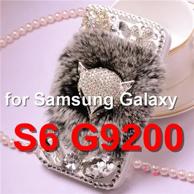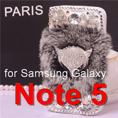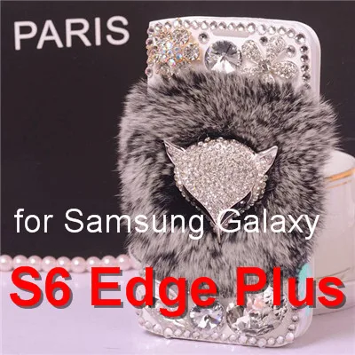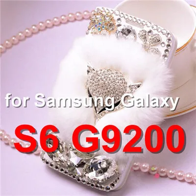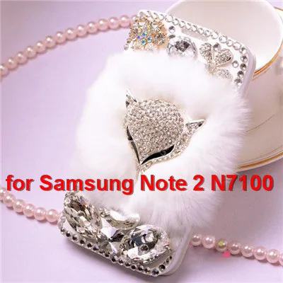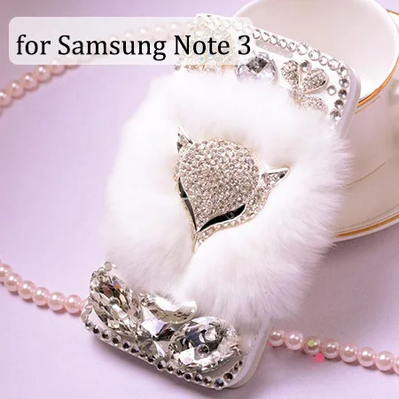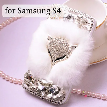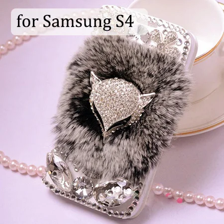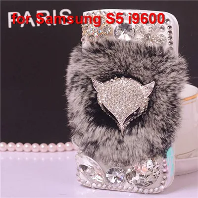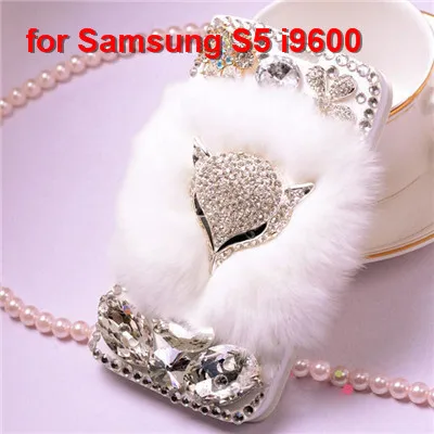 Features:Rabbit Fur Fox Head Bling Flip Leather Case