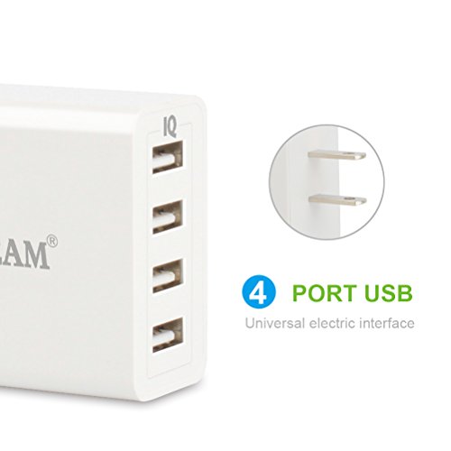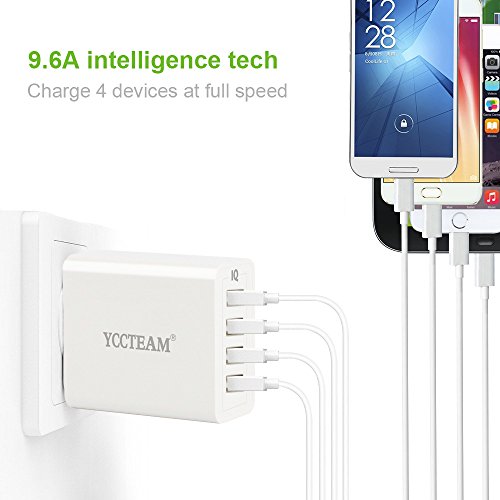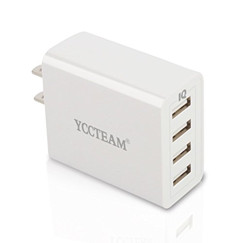 Wall Charger, YCCTEAM 25W 4-Port USB Charger Adapter Travel Charger Multi port USB Fast Charging Station 2.4 High Amps Each Port Smart IC for Apple Iphone, Ipad, Samsung, Tablet and More