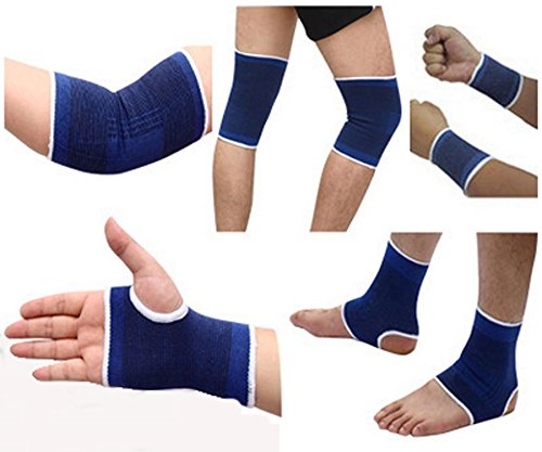 KiHomy Blue Women and Men Fitness gear, ankle/wristbands/elbow pads/ ankle riding gear knee protectors, Support Improves Circulation, Soothes Muscles & Wicks Away Moisture (SET)