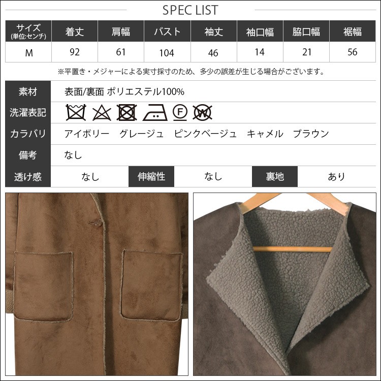 商品名:フェイクムートンノーカラーコート
