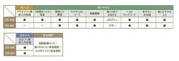 | 仕様 | 電源:100V 50/60Hz 容量(L):0.8 消費電力(W)(湯沸し時):1300 電源コード(m):1.5 |