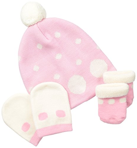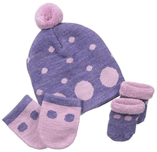 Warm and cozy beanie style hat with pom-pom accent n top has the cutest coordinating mittens and a pair of roll top booties. All in softened super wash merino wool. Special gift ready bag includedFeature