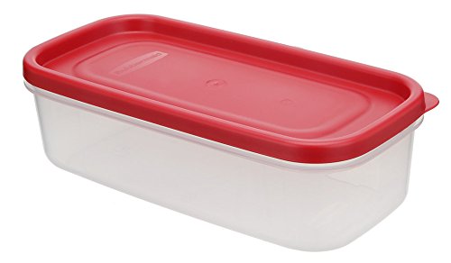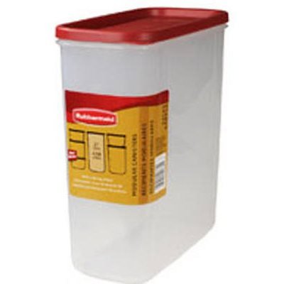 Rubbermaid Dry Food Storage Container, 8-Piece Set, Chili (FG7M7502CHILI). Containers designed to evenly stack, saving space in pantry. Comfortable grip allows you to handle container with ease. Clear containers make it easy to see what's stored. 1 lid fits all containers securely. Graduation marks let you easily see current content volume. Includes 1.2-, 2.4-, 3.8-, and 5-liter containers. For nearly 80 years, Rubbermaid has represented innovative, high-quality products that help simplify life. Recognized as a “Brand of the Century” for its impact on the American way of life.