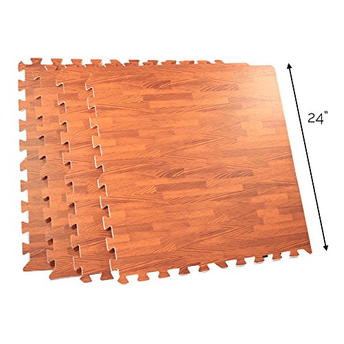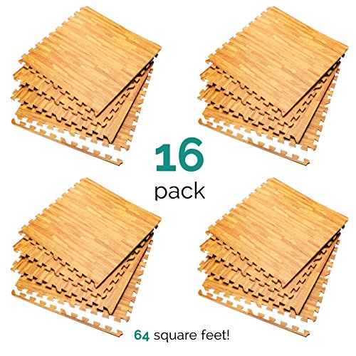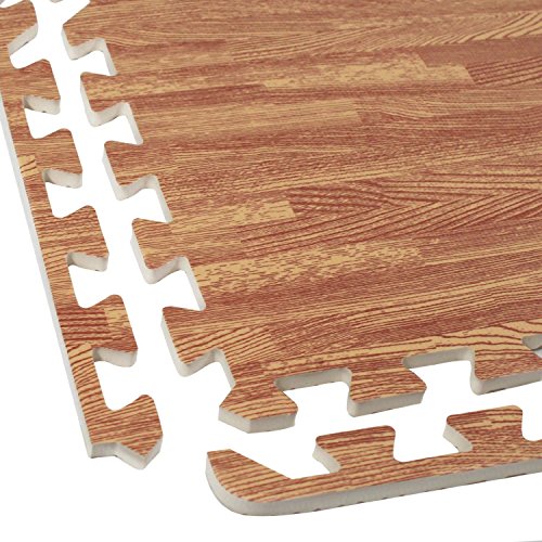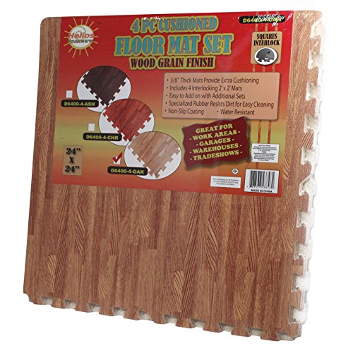 Studio : Home Essentials Publisher : Home Essentials Binding : Kitchen Product Description The EVA Foam Wood Grain Utility Floor Mat Set is great for garages, playrooms, gyms, workshops, trade shows, restaurants, and anywhere you might need extra cushioning. The 2 ft x 2 ft mat tiles interlock to fit any shape of floor. Each tile comes with 2 border to give a gorgeous finished look when quickly assembled. Add two or more sets for additional coverage as needed.