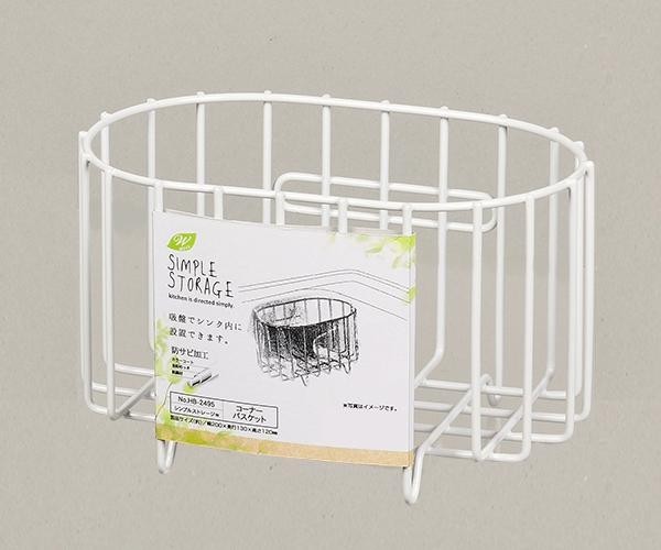 吸着盤で簡単にシンク内に設置できる、コーナーバスケットです。