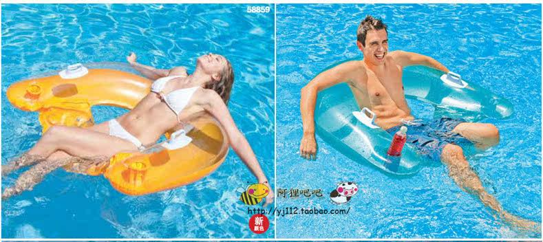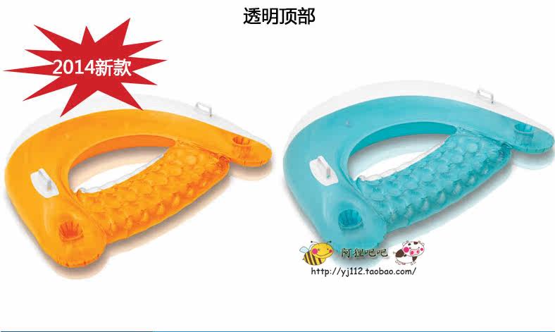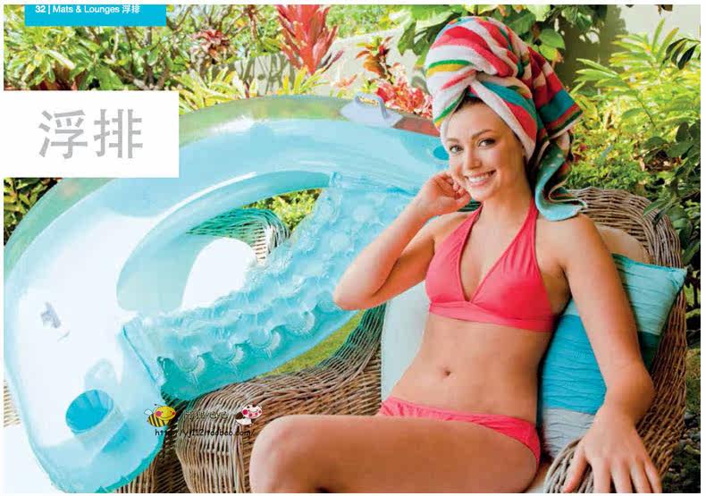 Brand: INTEX (the world's first inflatable brand)]Model: 58859Style: The new handle base type floating rowMaterial: material thickness 0.25MM waterproof plastic chairs, load within 65 kgSize: 152 * 99CM load within 65 kg