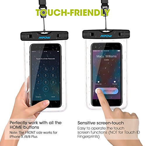 Free Operation and Transparent Cover: This slim waterproof phone cover is designed not to hinder touch screen use even underwater. Transparent cover all around so as not to block the camera use. You can perfectly operate your cellphone but NOT for touch ID fingerprint. Note: The FRONT side of brand Mpow works for iPhone 7/ 7plus.