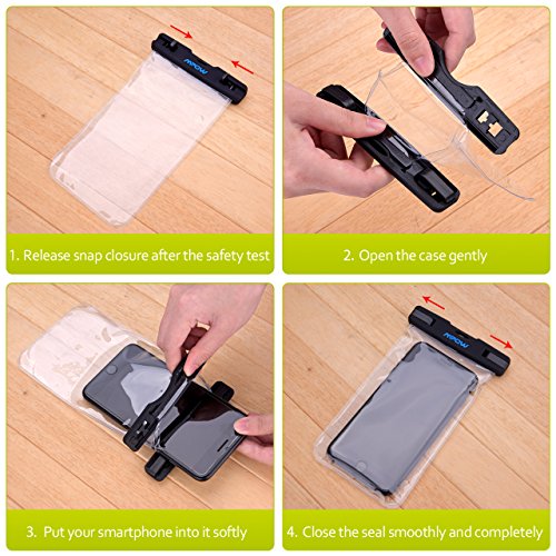 NOTE: 1. Phones with large otterbox are not recommended in this bag! 2. Cell phone may suffer hydraulic pressure under certain water depth , which will impact the the operation of the touchscreen. Please take photos by volume buttons in this case. 3. Easy to operate the touch screen functions, but NOT for touch ID fingerprint.