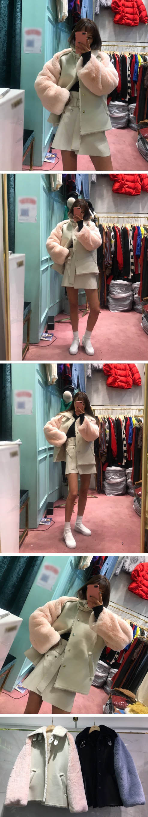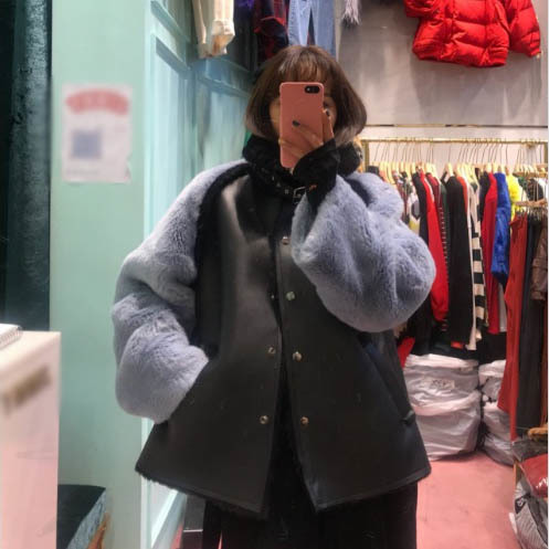 Women`s Buckle Faux Shearling Jacket with Faux Fur Sleeves
