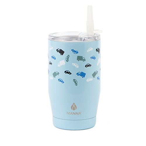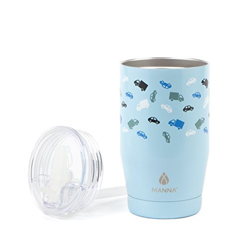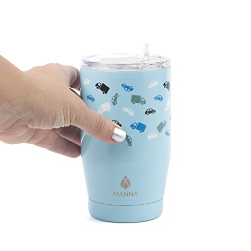 COLD OR HOT DRINK ALL DAY - The Manna Kids Maverick Water Bottle features modern double-walled vacuum insulation that keeps liquid hot for 8 hours and cold for 18 hours. Its unique construction reduces heat transfer from interior-to-exterior and vice versa.