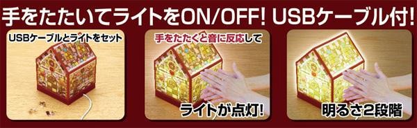 | ライトが光る家型ジグソーパズルです。音に反応して電源が入るので、手をたたいてライトのON/OFFが可能。USBで電源を確保できるので、ベッドサイドのインテリアに最適! |