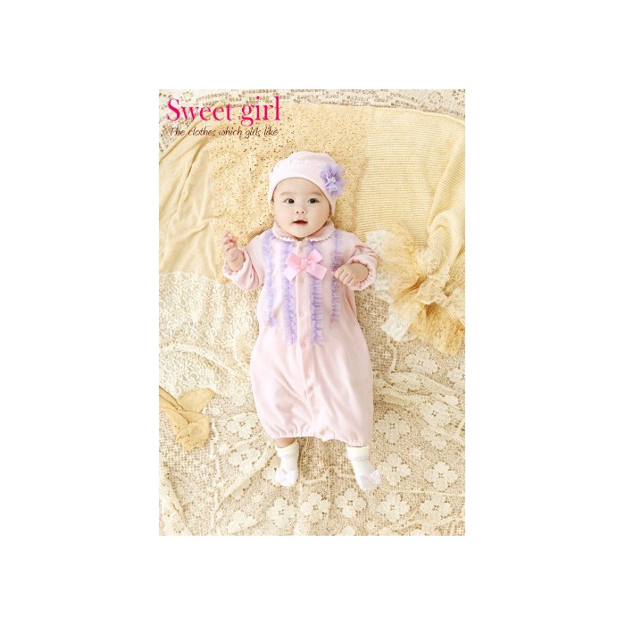 《니시키》 스위트 걸 망사(Tulle) 프릴 베로아 신생아 투웨이 올 P5234 50-60cm 퍼플