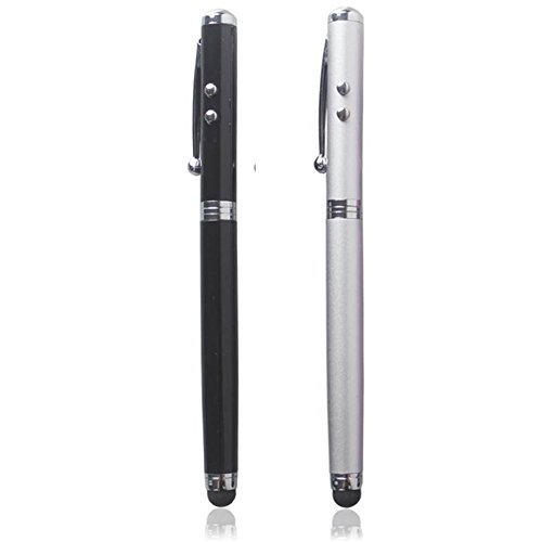 -. Title : Stylus Pen [2 Pcs], Multi-Function Universal Touch Screen Stylus + Ballpoint Pen + LED Flashlight For Smartphone/Tablets iPad iPhone Samsung etc [Black + Silver] + 2 Extra Battery