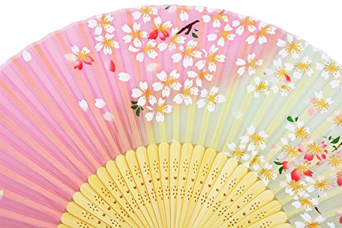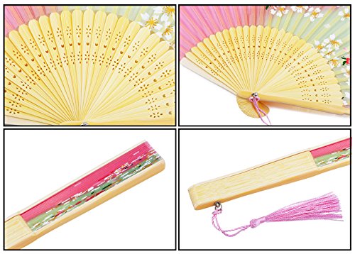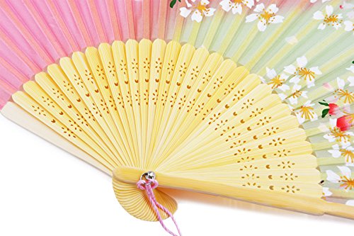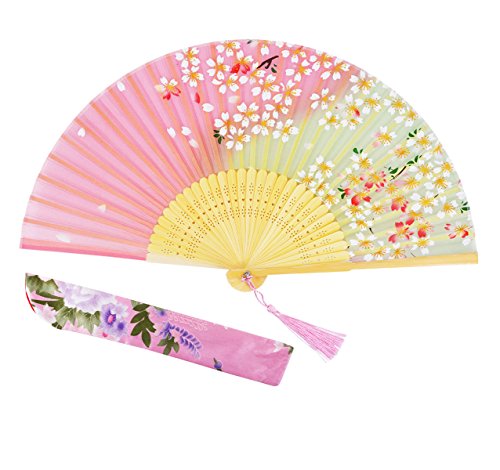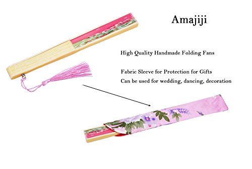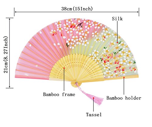 Amajiji 8.27" "Cherry blossoms" Chinease/Japanese Hand Held Silk Folding Fan with Bamboo Frame,Hollow Carve Patterns Bamboo Frame Women Hand Folding Fans Hand Fan Gift fan Folding Fan (Pink)