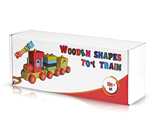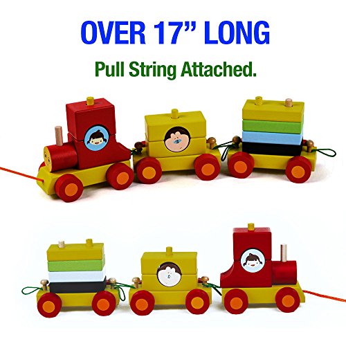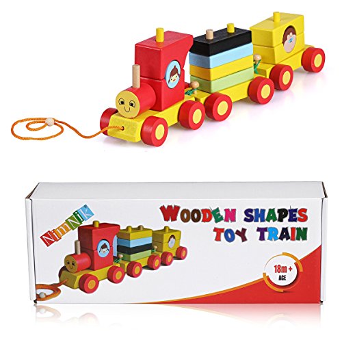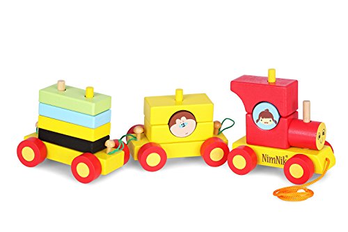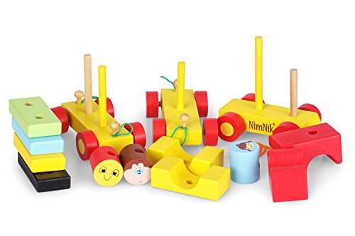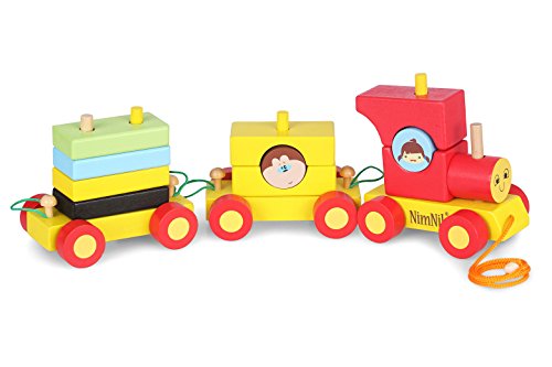 ☸ FUN PULL ALONG TRAIN TOYS FOR KIDS - NimNik wooden stacking train toys has 14 toy wooden blocks + pull string. Train toy for toddlers, boys, girls, 3, 4, 5 year olds or from 2 year old